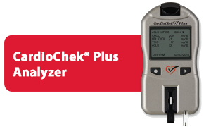 The CardioChek Plus analyzer achieves accuracy similar to that of a clinical laboratory, but only requires a small (40 μL) blood sample from a fingerstick.