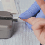 A MEMo Chip is included with each vial of test strips and contains specific calibration and other information that enables the CardioChek Plus analyzer to “read” each test strip. The MEMo Chip is the key link between the test strip and the analyzer.